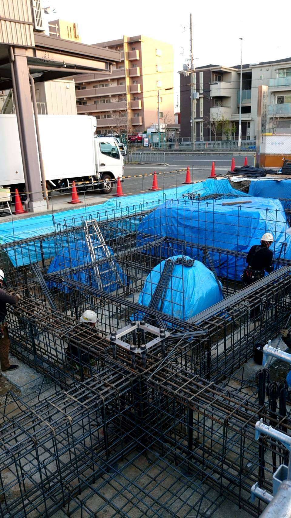 京都府向日市の鉄筋工事の作業風景になります